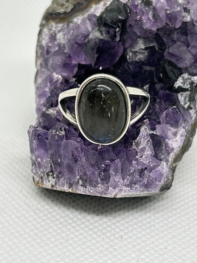 bague ovale en argent et labradorite T8