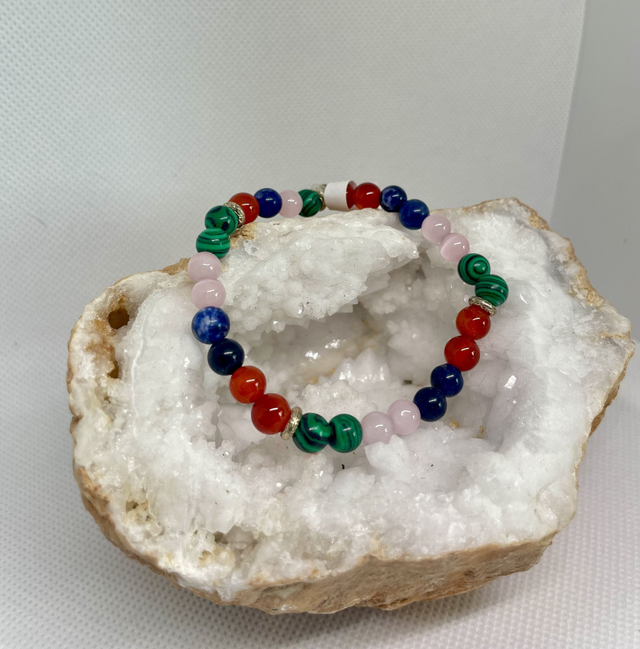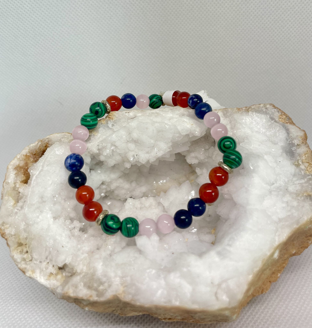 🌸 Conçu pour accompagner le cycle féminin, ce bracelet artisanal allie bien-être et élégance grâce aux vertus des pierres naturelles :