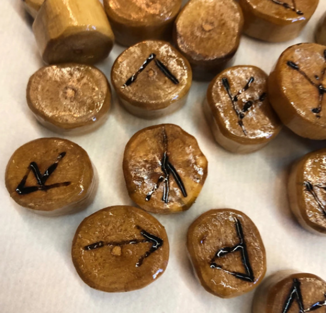 Runes Futhark sculptées dans du bois de noisetier naturel 🌿