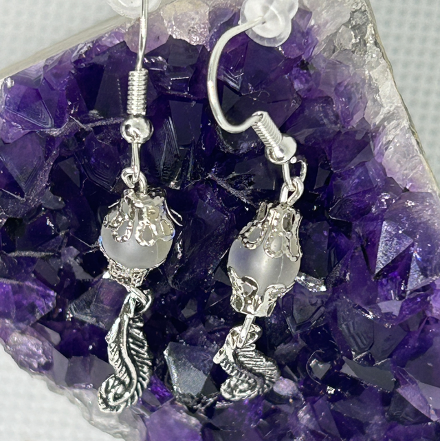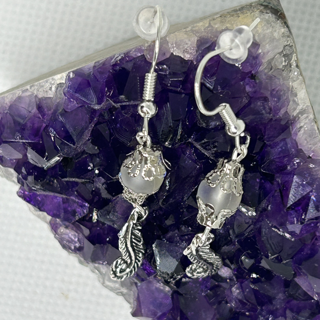 Découvrez nos boucles d’oreilles en Aqua Aura montées sur inoxydable argenté, sublimées par une délicate breloque plume.